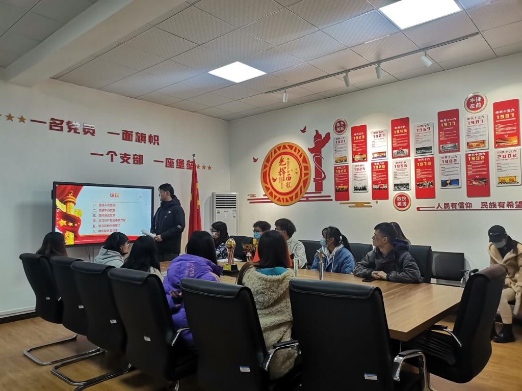 (通讯员 张祎博)11月29日晚七点,beat365官网中文版本员工党支部于一教111党员活动室开展十一月主题党日和政治学习活动。本次活动主要围绕学习《中国共产党简史》第六章和党的创新理论展开。beat365官网中文版本员工党支部书记刘鋆锋老师以及全体在公司党员参与。本次活动由商务5191班胡海林同志主持。