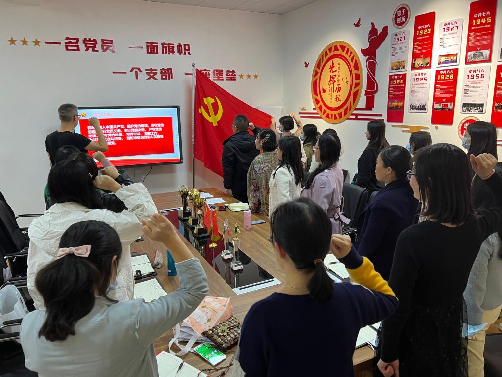 会议伊始,beat365官网中文版本召开支部主题党日活动。刘鋆锋带领全体党员重温入党誓词;集体诵读党章;学习《中国共产党简史》内容,习近平总书记在中央人才工作会议上的讲话(2021年 9 月 28 日),习近平总书记关于弘扬爱国主义精神重要论述综述 (2021 年 10 月 1 日),并开展主题研讨。