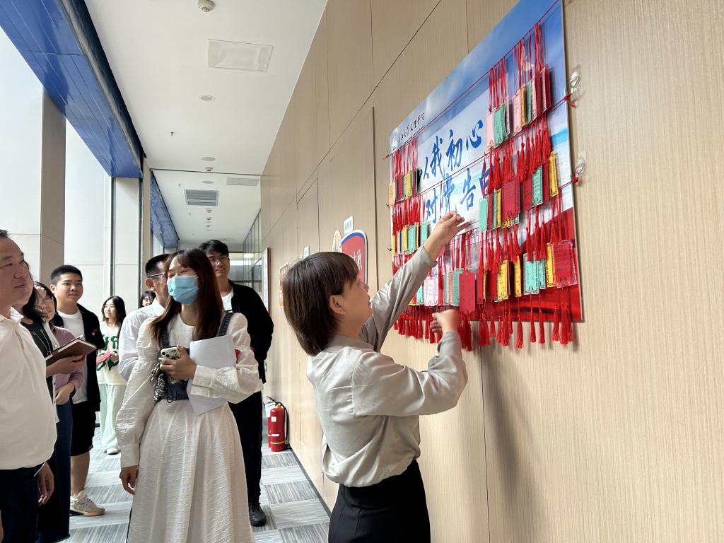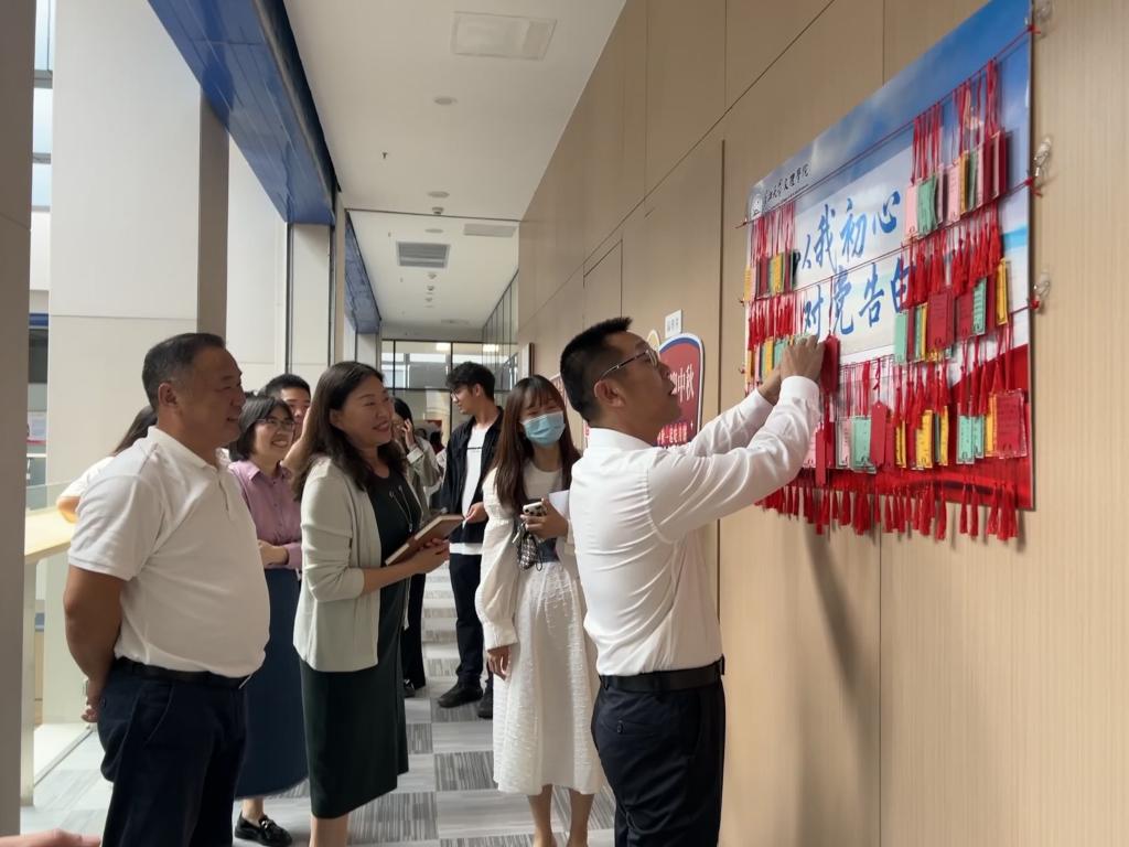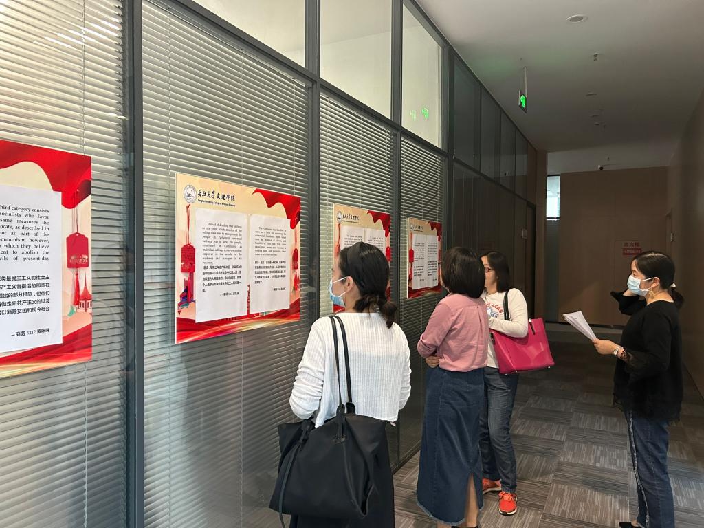 9月28日下午,党委书记颜建洲、公司经理李兴祥、副经理李波受邀来到图书馆5楼走廊参观。与beat365官网中文版本师生一起向向祖国深情告白。102条心愿与祝福,包含全体师生党员及入党积极分子的初心和梦想,共同表达对新中国74华诞的美好祝愿,抒发着爱国爱党的深切情怀。支部主题党日活动中,老师们集体对员工的译文进行了评阅和更正。