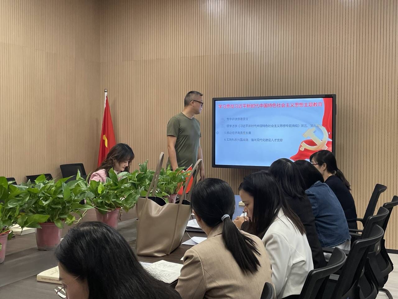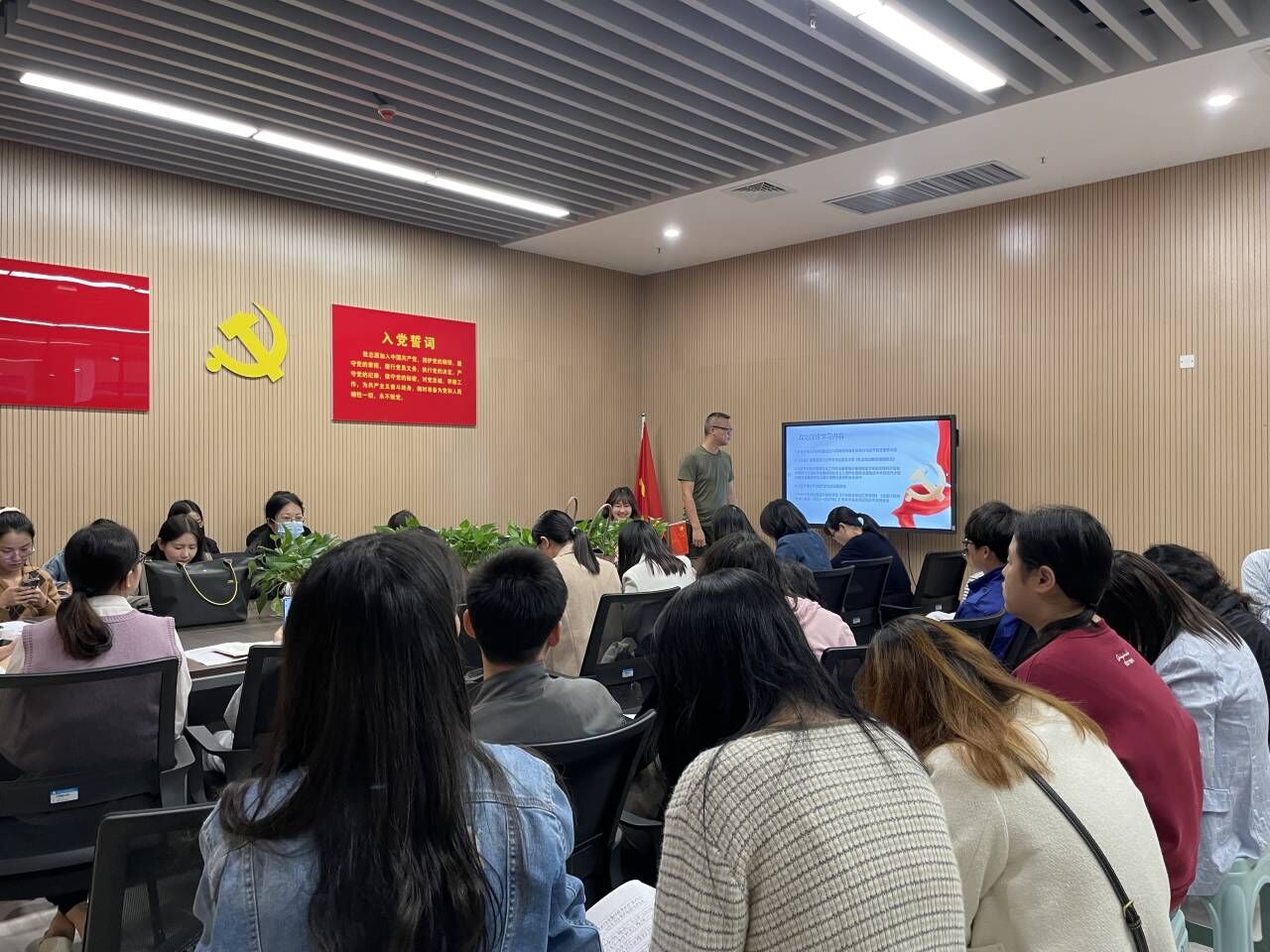 会议伊始,刘鋆锋书记带领全体党员重温入党誓词;共同诵读《中国共产党章程》第九章;共同学习习近平总书记在《求是》杂志发表的文章《努力成长为对党和人民忠诚可靠、堪当时代重任的栋梁之才》、《扎实推动教育强国建设》;2023年9月9日习近平总书记致信出席全国优秀教师代表座谈会的重要指示精神;习近平在中共中央政治局第五次集体学习时强调 加快建设教育强国 为中华民族伟大复兴提供有力支撑;《新时代高校教师职业行为十项准则》;警示教育:湖北省酒驾醉驾典型案例。