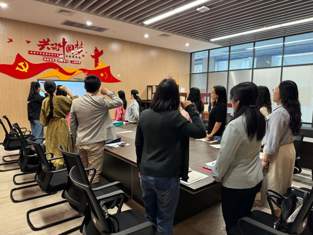 随后,开展支部主题党日活动。钟燚老师带领全体党员重温入党誓词,学习《中国共产党章程》(第五章);共同学习习近平总书记历次考察湖北重要讲话精神;中央周边工作会议在北京举行 习近平总书记发表重要讲话;《习近平关于加强党的作风建设论述摘编》(1-3章);中央八项规定和中央八项规定精神;部分高校违反中央八项规定精神问题;重温习近平总书记关于总体国家安全观的重要论述;《中华人民共和国保守国家秘密法》。