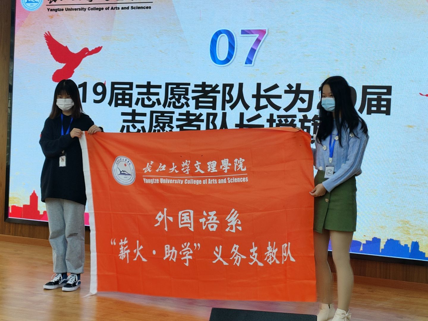 最后beat365官网中文版本团总支员工会主席田蕊宣读优秀志愿者名单,辅导员许静婷授予证书并合影留念。