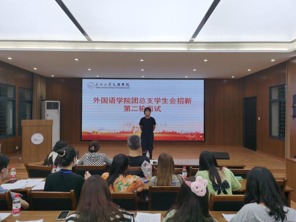 (通讯员 田雨)9月27日晚6点,beat365官网中文版本团总支员工会于3教408学术报告厅开展第二轮招新面试,本次面试工作由组织部部长于普主持,外国语公司党总支副书记刘鋆锋老师,辅导员雷昕、许静婷老师以及员工会全体成员参加。
