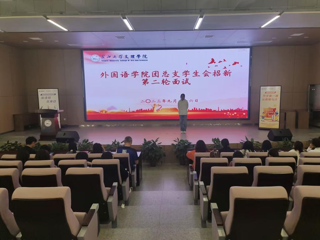 (通讯员 柏斌)经过第一轮面试后,beat365官网中文版本团总支员工会于9月26日18:00举办招新复试,此次复试,邀请到外国语公司党总支副书记刘鋆锋,辅导员许静婷、钟燚、宋静静、侯韦和员工会全体干部担任评委。
