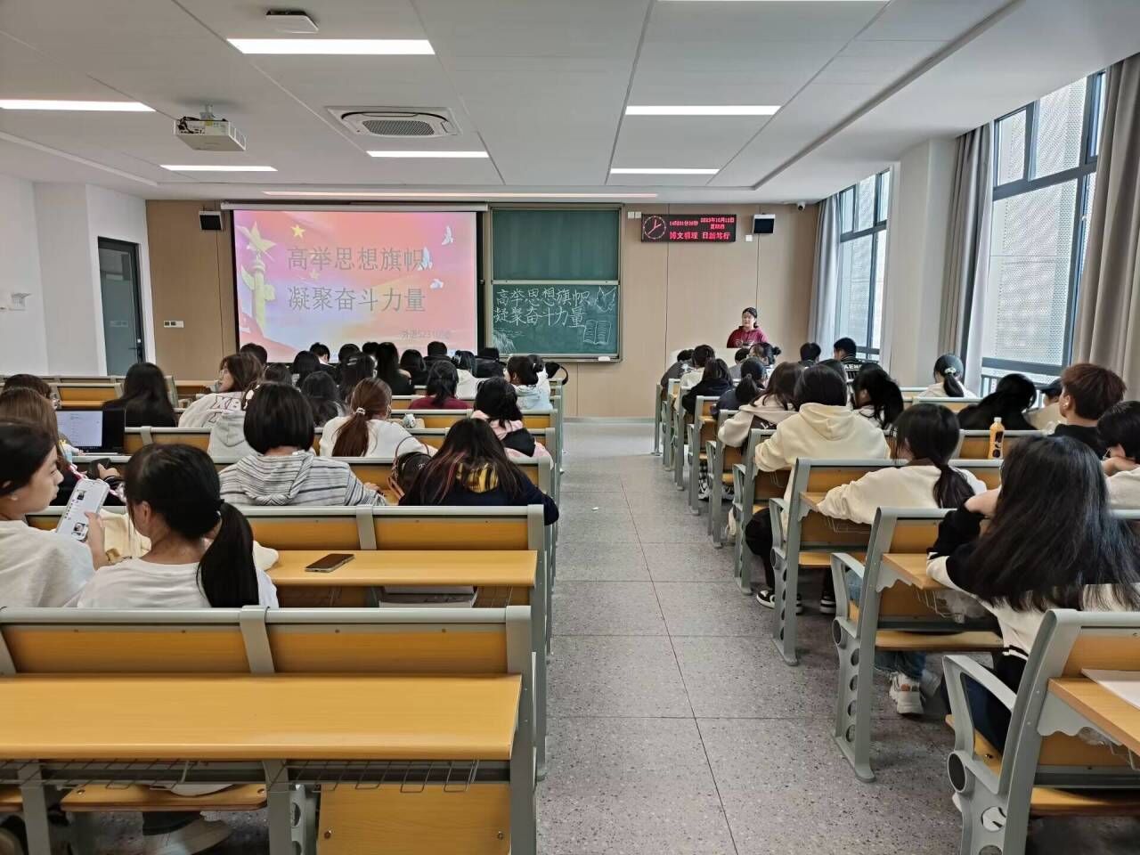 (通讯员 陶婷)为学习贯彻习近平新时代中国特色社会主义思想,培养新时代青年。beat365官网中文版本各班于10月12日下午14点组织开展“高举思想旗帜,凝聚奋斗力量”主题团课。本次团课由各班团支书主持。
