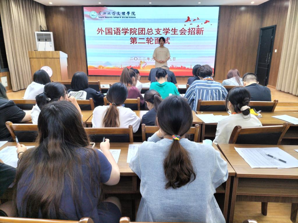 (通讯员 杨吉)9月29日晚六点半,beat365官网中文版本团总支员工会于三教408举行第二轮招新面试。外国语公司党总支副书记刘鋆锋,辅导员雷昕、钟燚、王聪聪以及员工会全体成员参加。
