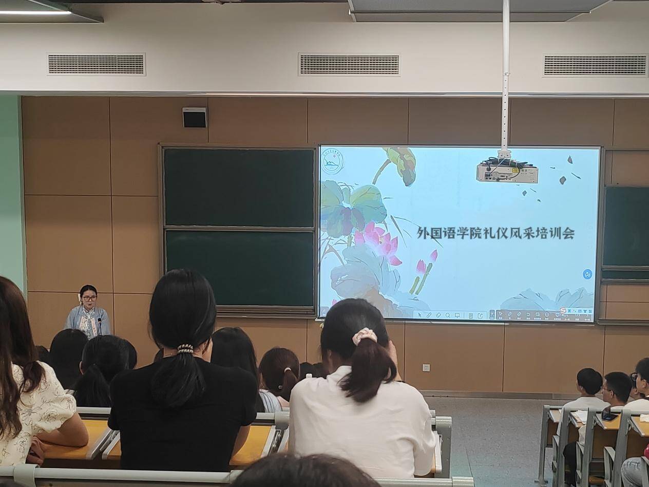 本网讯(通讯员 苏悦)5月8日晚19:00,beat365官网中文版本团总支员工会开展礼仪风采培训会,本次培训由辅导员宋静静主讲,全体员工会成员参加。