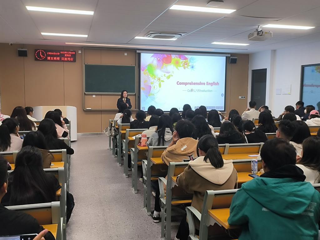 随后,石从红老师从“预习课本”、“收集话题词”、“梳理信息”、“形成框架”四个方面介绍《英语视听说》课程。提醒同学们适当的泛听于听力很有帮助,而其中通过精听练习敏感度也是最为重要。