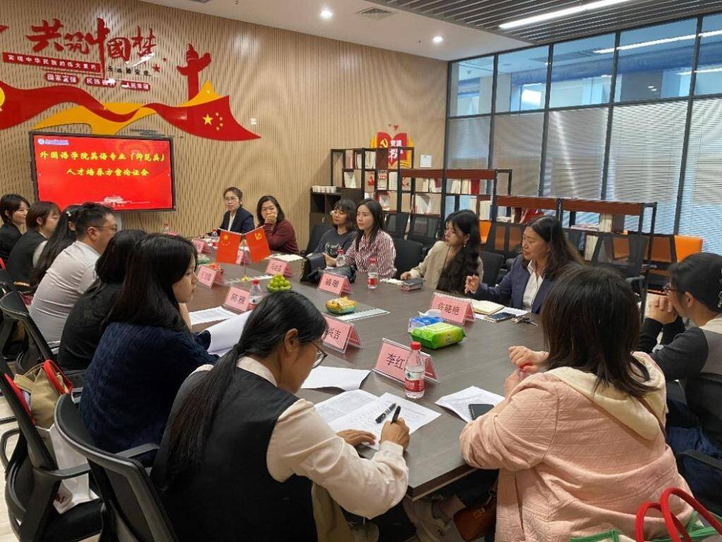 beat365官网中文版本经理许晓艳、各专业负责人、教研室主任及骨干教师参与论证。此外,公司特邀刘江盼(荆州市教育科学研究院教研员)以及在全国各大中小学任教的共9名优秀员工参加英语(师范)专业人才培养方案论证会。同时,邀请江超(深圳市智创汇科技有限公司总经理)等6名在各大公司担任主要职务的优秀员工参加商务英语人才培养方案论证会。