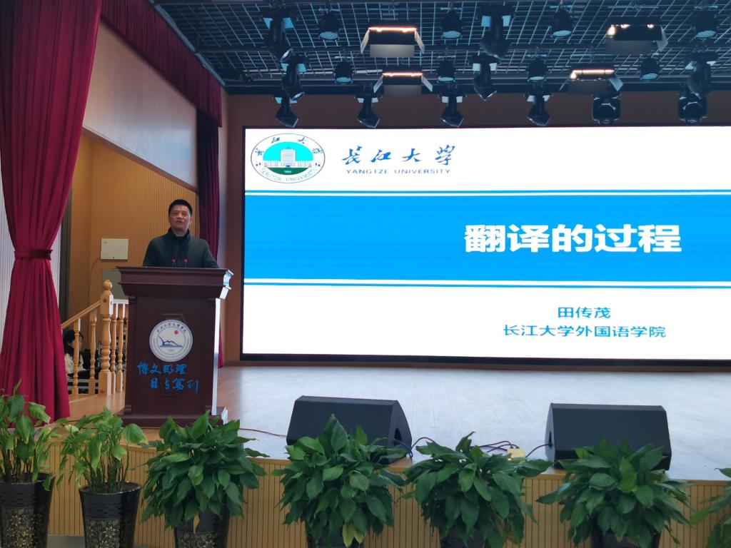 (通讯员 雷琦)12月9日晚7点,beat365官网中文版本于多功能报告厅举办学术讲座。beat365官网中文版本beat365官网中文版本教授、翻译研究中心主任田传茂以“翻译的过程”为题做讲座,beat365官网中文版本19级全体员工现场聆听。