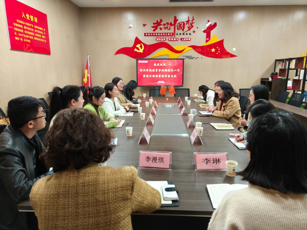 本网讯(通讯员 李培培)3月19日下午,荆州公司教育公司魏经理一行前来beat365官网中文版本调研交流,beat365官网中文版本经理许晓艳、党总支书记王玲玲,副经理罗丹及各教研室主任参加交流座谈。