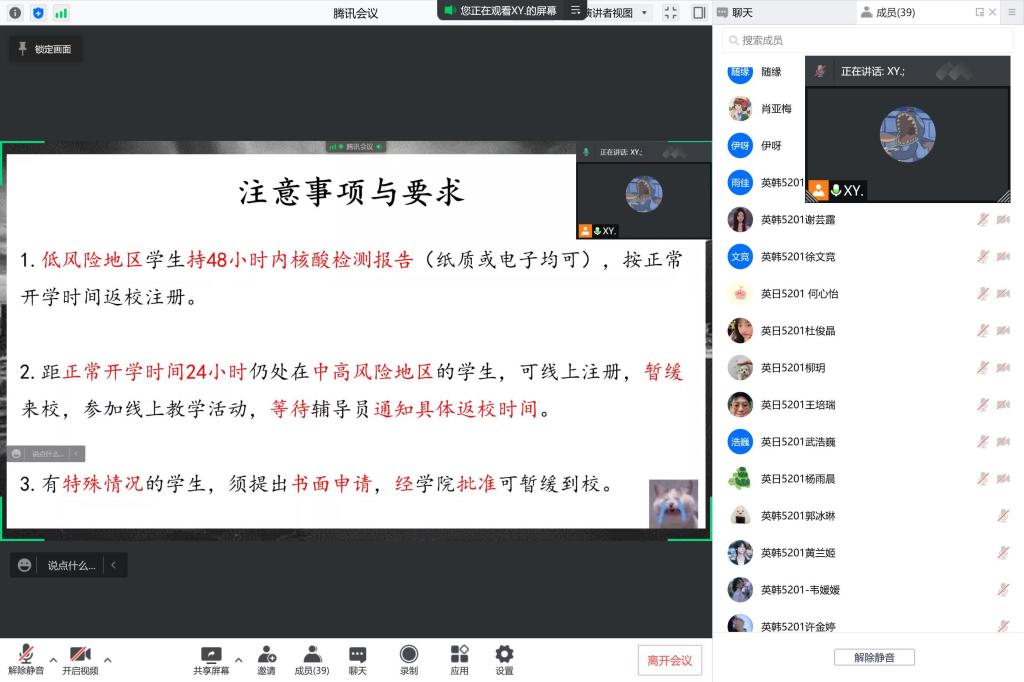 会上强调了员工返校注意事项和要求,低风险地区员工需持有48小时内核酸检测报告;距正常开学24小时内仍处于中高风险地区的员工,暂缓来校;要求员工做好疫情期间的个人防护,严格遵守疫情防控要求。同时提出希望同学们明确新学期目标。