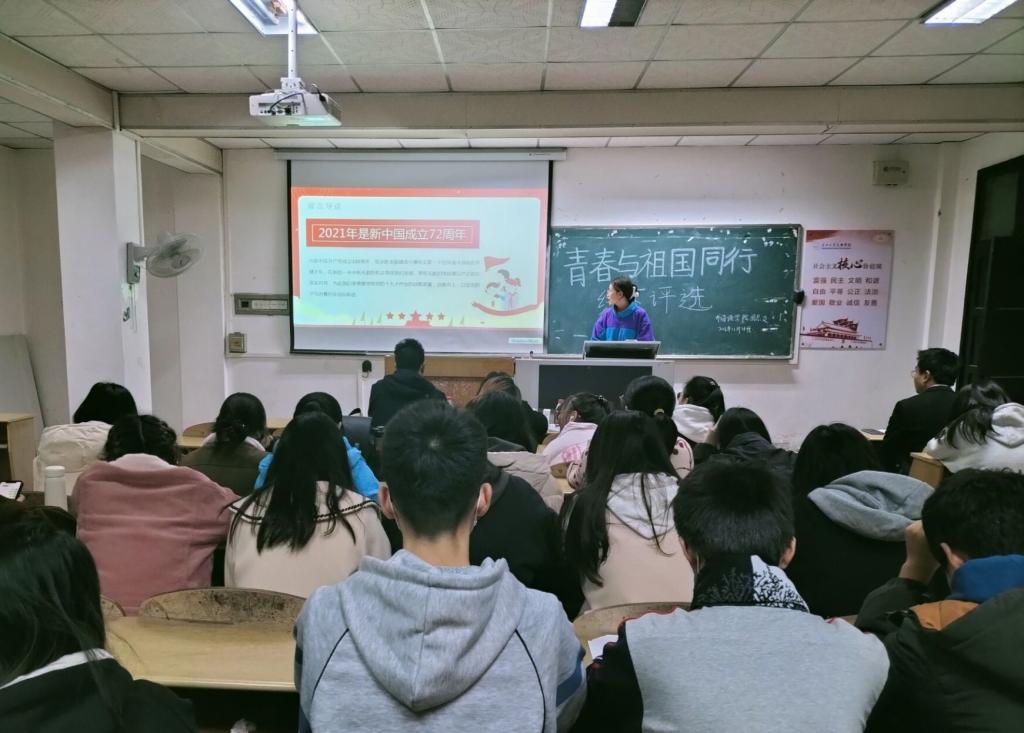(通讯员 杨吉)11月21日晚7点,beat365官网中文版本于一教308举行开展“青春与祖国同行”主题活动初赛。本次活动由于普主持,辅导员黄邹毅、雷昕、拓颖、许静婷担任评委。