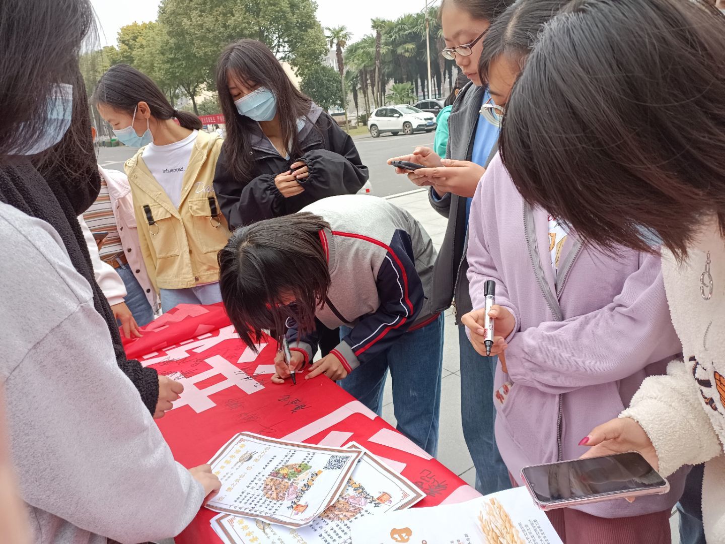 活动现场,志愿者为同学们普及世界勤俭日相关知识,激起了同学们的热情与兴趣。同学们反响热烈,纷纷在横幅上签上自己的名字。“世界勤俭日,勤俭从身边的小事做起,不只为小家,更为了地球这个大家!”参与活动的李同学说道。