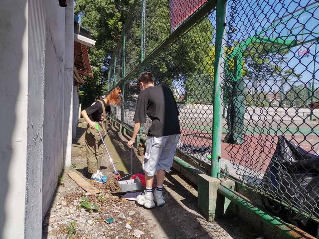 按年级分工后,在员工负责人的带领下,同学们积极打扫划分到的区域,对校园主干道、草坪、广场、员工宿舍等公共区域进行大扫除;对公共物品及地面、走廊等公共区域进行清洁消毒。
