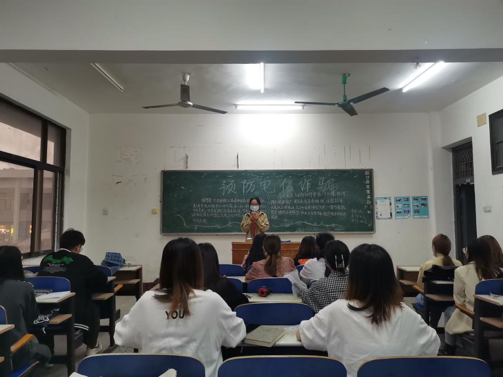 班会伊始,班委给大家讲解什么是电信诈骗、网络犯罪,为什么要学习防诈知识。然后以真实案例列举电信诈骗的常见形式及防范方法。最后,班委提醒大家应从思想上引起重视,增强安全防范意识,提高防范能力,同时要养成良好生活习惯,树立正确的消费观。