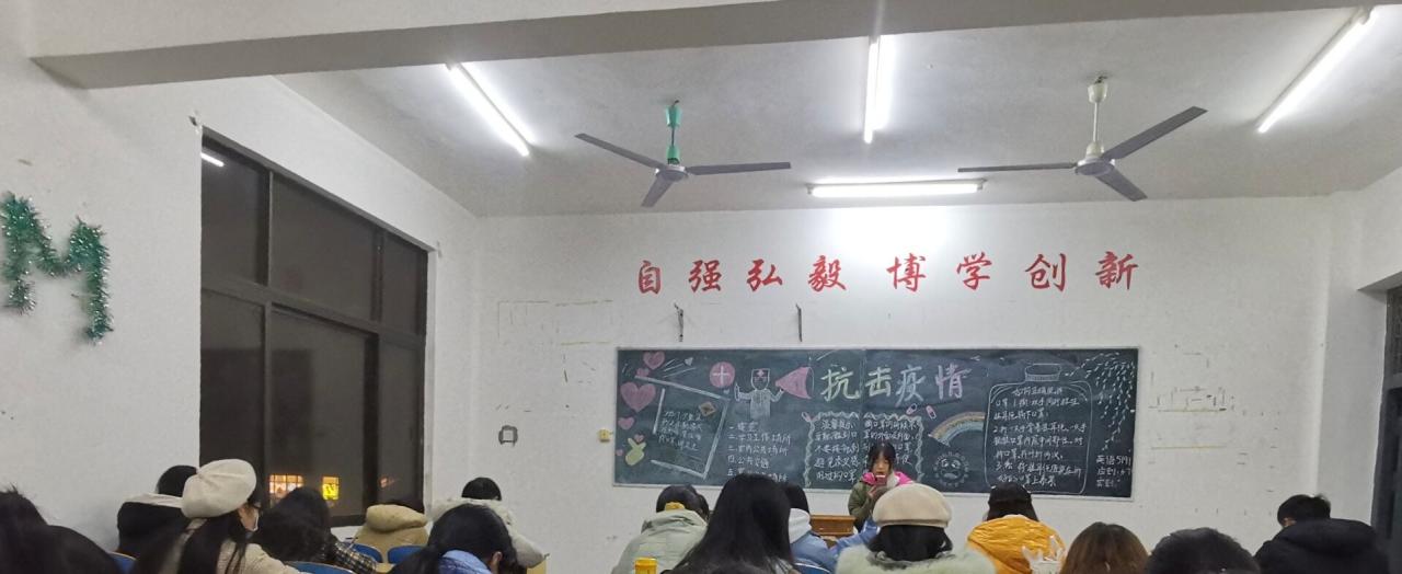 班会伊始,班委讲解疫情现状和防疫知识,呼吁同学应该以身作则,做好防护措施。随后,班委强调公司防疫相关要求,提醒员工注册荆智通出行码,进出校园扫码通行;乘坐交通工具期间的防疫注意事项;校内相关防疫要求,如不点外卖、佩戴口罩、保持间距、室内勤换气通风等。