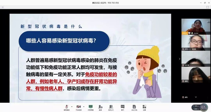 一场突如其来的新型冠状病毒感染肺炎给我们的社会生活、学习生活和精神生活都造成了巨大的冲击。班会开展过程中,主讲人先向同学们普及防范新冠病毒的知识,紧接着由同学们互相交流疫情当下的学习生活。即便是足不出户,大家也没有闲下来。除了日常网课教学,大家还在家展开了各种活动。有的同学制定了自己的学习计划;有的同学则利用这段时间“猛练厨艺”;也有同学每天保持良好作息,锻炼身体,提高自身免疫力。这些都是疫情当下极好的生活方式。对抗新冠病毒这场没有硝烟的战争,需要我们每个人积极配合参与,众志成城抗击疫情,才能赢得最后的胜利。