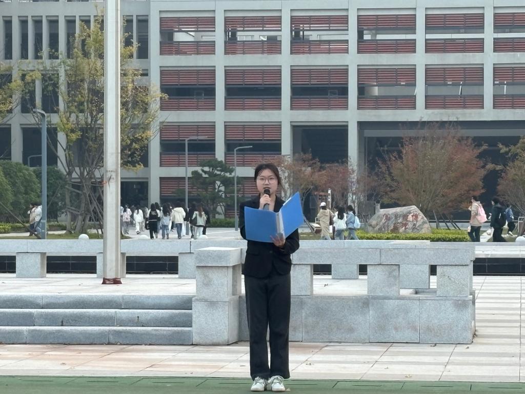 随后,员工代表苏悦发言。苏悦同学号召我们要奋斗不息,面对困难不停止前进的脚步。接着,教职工代表钟燚老师发言。鼓励同学们以青春之小我,书写强国之大我,在实现中华民族伟大复兴的征程中,绽放属于自己的璀璨光芒。