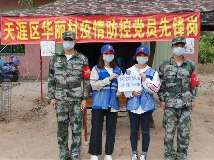 于海南三亚市天涯区华丽村进行疫情防控工作,主要在村口为村民帮测体温,检查是否有不适状况。除了大学上网课的时间以外,她把所有的时间都用来参加志愿服务。“我父母都很支持我。”她表示有需要她的时候她会继续参加志愿服务。
