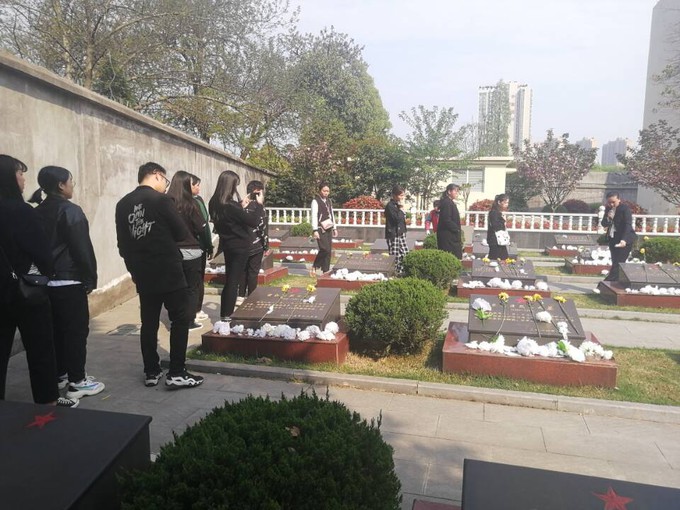 下午两点四十,志愿者们在大一辅导员黄邹毅老师的带领下到达沙市烈士陵园。在烈士纪念碑前,志愿者们向先烈敬献花圈,默哀致敬,并进行宣誓等活动,表达了对革命先烈的缅怀之情。随后志愿者们来到了烈士墓区,向烈士们敬献小白花,庄重的鞠躬表达了对先烈的深切哀悼和无尽的敬仰之情,认真聆听工作人员讲述关于故去先烈的伟大事迹,感受他们的满腔热血和爱国情怀。