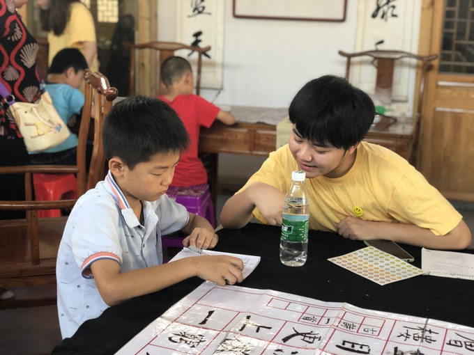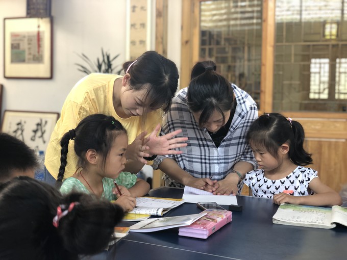 初次与小朋友们见面时,志愿者和小朋友比较生疏,有些小朋友比较羞涩和紧张,但是志愿者们的耐心教导和悉心照顾渐渐地感染了小朋友,小朋友的纯真也使得志愿者们的支教热情愈发高涨。每每走进教室,迎接志愿者的是小朋友们的尖叫声和欢呼声。由于前来的留守儿童都是小员工,自觉性和专注力的缺乏给志愿者们造成了一些小麻烦,好在志愿者灵活而有耐心,加上不失严肃的指正,教学的效果渐渐好了起来。