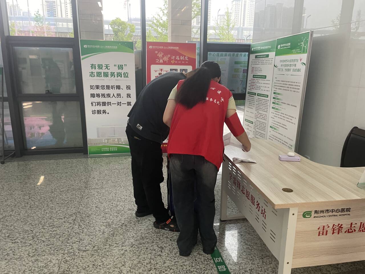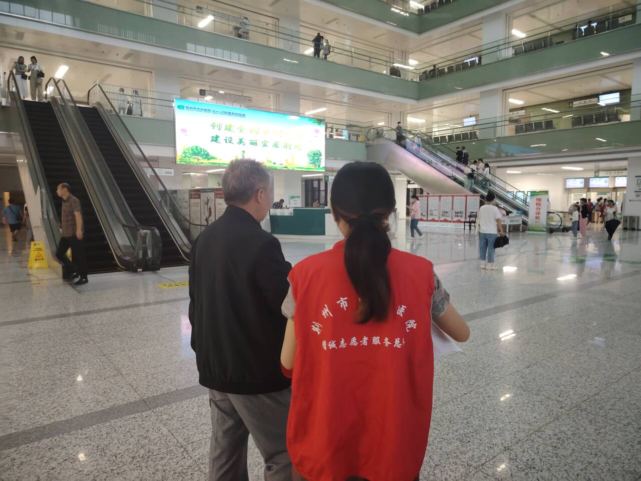 志愿者经过集中培训后,统一身着红马甲,以饱满的热情和充足的耐心对待每一位寻求帮助的患者,分组在医院门诊大厅以及二楼为患者和家属提供导医导诊、文明劝导、咨询答疑、协助自助机使用、维护就诊秩序等服务。