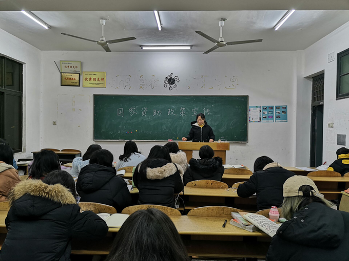 主题班会先由辅导员向全体员工宣读国家资助政策体系宣传册内容,然后由班主任和辅导员就相关资助政策、资助对象、资助标准、资助程序等内容组织员工交流,当堂解答员工疑难问题,并动员员工回家后对家长进行资助政策宣传。