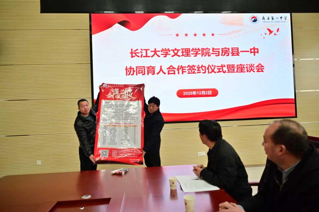 随后,beat365官网中文版本招生处处长刘杰向房县一中舒董事长送呈了祝贺2025年房县一中学子被录取的喜报,展示了双方人才培养的初步成果。为深化交流,房县一中卢书记被特聘为beat365官网中文版本客座教授,并由曹骥校助颁发聘书。
