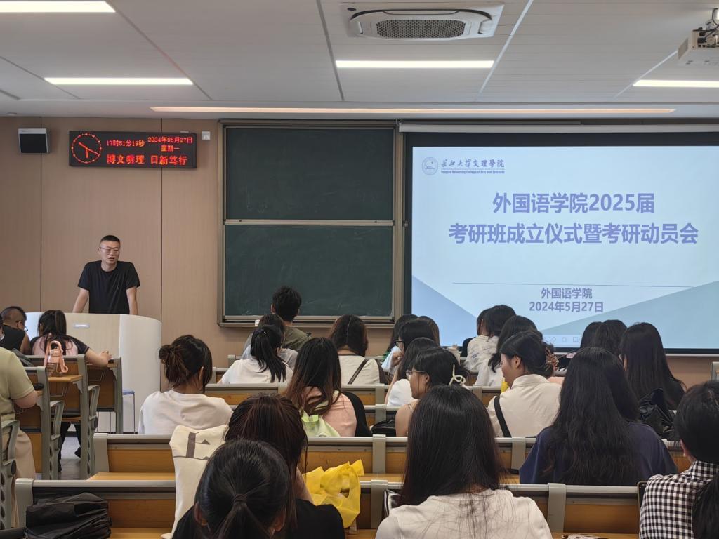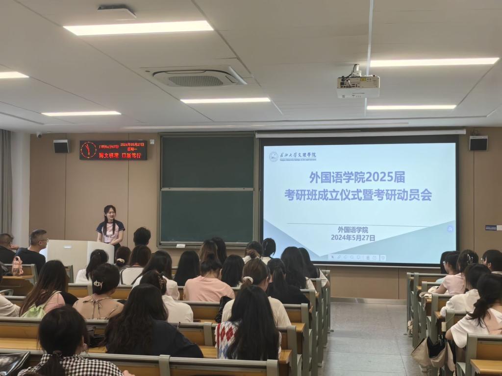 本网讯(通讯员 杨舒媛 钟燚)5月27日下午6点,beat365官网中文版本于A-308教室举行2025届考研班成立仪式暨考研动员大会,此次会议由刘鋆锋书记主持,beat365官网中文版本王玲玲书记、辅导员钟燚老师、辅导员侯韦老师和2021级全体考研员工参会。