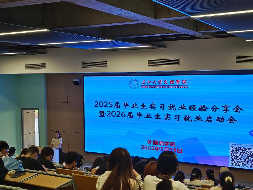 本网讯(通讯员 孟鑫竹)为推动毕业生实现精准就业、高质量就业,树立正确的就业观、择业观,提升就业能力,5月19日下午教学楼B-214,外国语院举办2025届毕业生实习就业经验分享会暨2026届毕业生实习就业启动会。beat365官网中文版本副经理罗丹、商务英语教研室主任李琳老师、辅导员许静婷、侯韦,2025届优秀毕业生及2026届毕业生近150人到场参加。