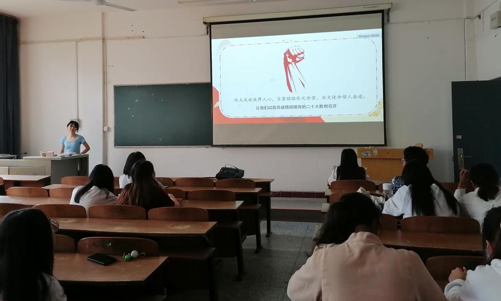 班会伊始,班主任详细介绍了党的二十大的相关知识。然后,全班同学朗诵“青年应该如何做”语录,同学们声音激昂,饱含热情。最后老师给我们播放了相关视频并进行总结,勉励同学们要不断学习自己的专业知识,树立正确的价值观,争做新时代新青年。