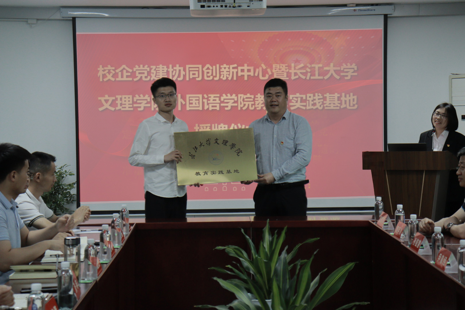 全体人员佩戴党徽,高举右拳,面向党旗,重温入党誓词。公司党委副书记于永伟向城发教育公司副总经理王俊杰授予“beat365官网中文版本beat365官网中文版本教育实践基地”牌匾;城发教育公司总经理陈晓勇向外国语公司党总支书记王玲玲授予“校企党建协同创新中心”牌匾。