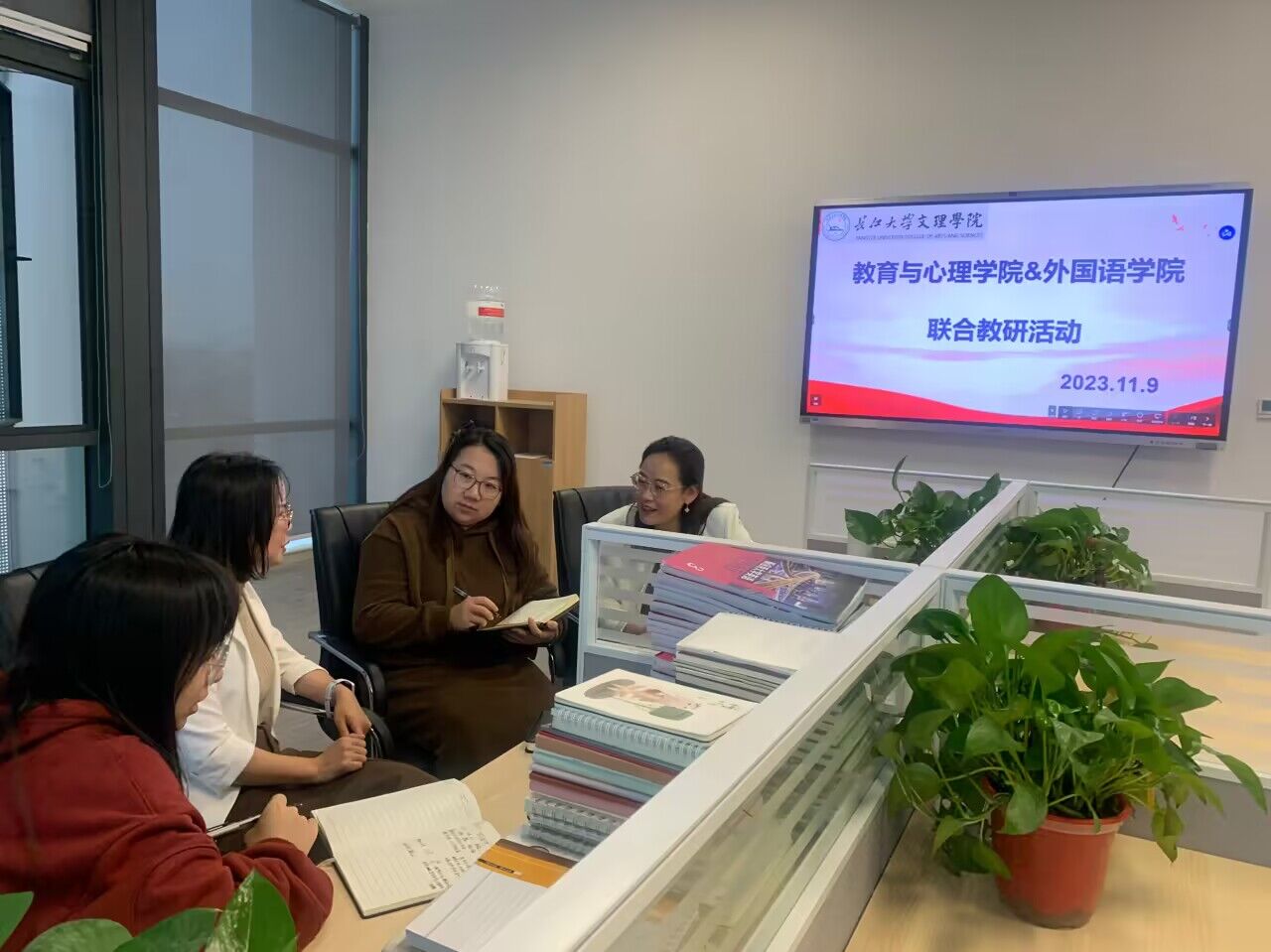 活动中,老师们根据大学英语教育改革需求,就《大学英语》跨学科教学、《教育学》、《心理学》教学现状等方面进行交流讨论。并就线上线下资源整合、课程测评方式等内容进行探讨与交流。
