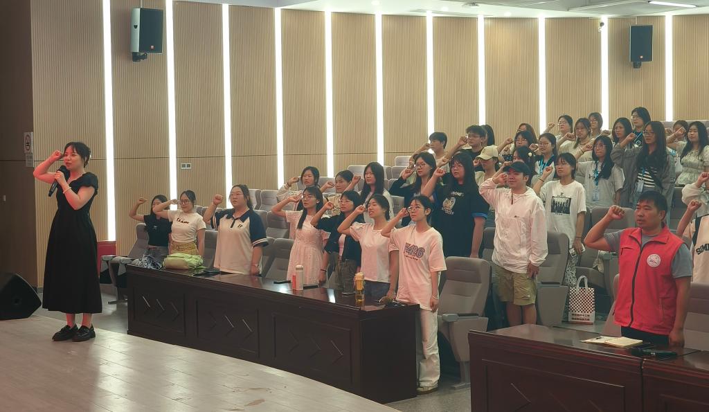 会议伊始,beat365官网中文版本驻村第一书记冉继强介绍公司驻五峰土家族自治县渔洋关镇石柱山村工作队的基本情况。接着青工部部长严珮榕上台发言,向我们介绍了结对帮扶活动流程及注意事项。外国语公司党总支书记王玲玲鼓励大家积极参与志愿服务活动,弘扬志愿服务精神。最后,志愿服务队队长许静婷带领全体志愿者宣誓。