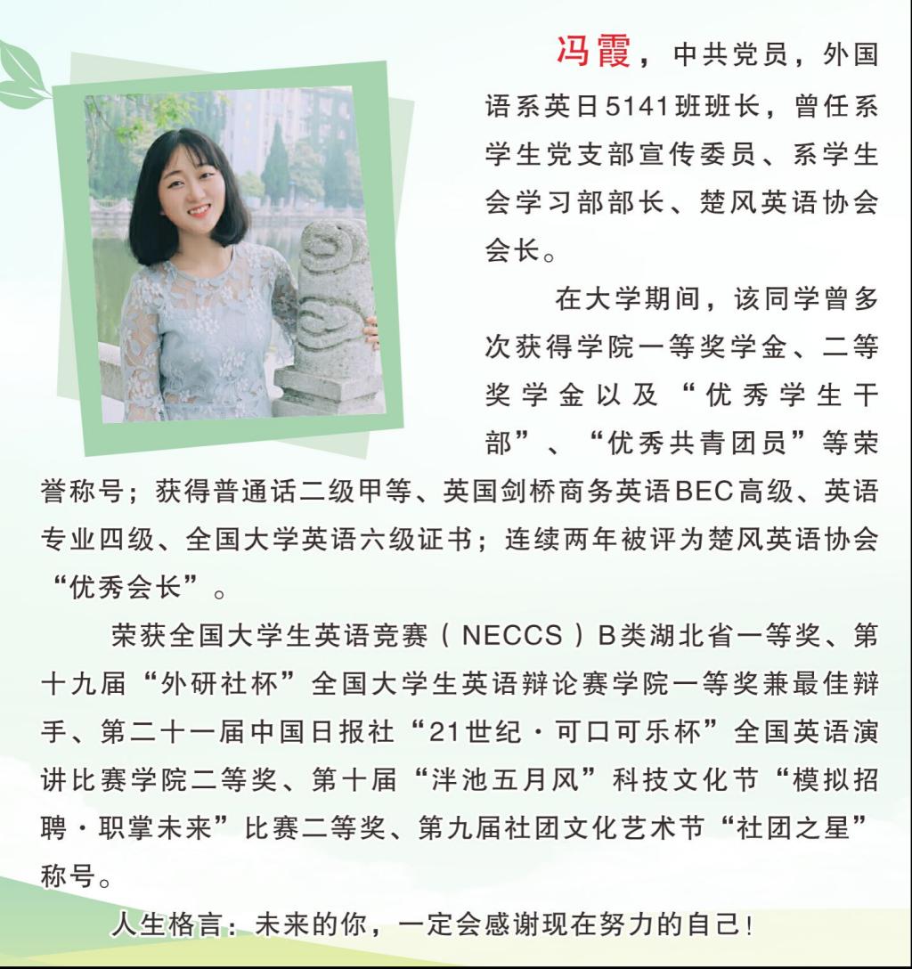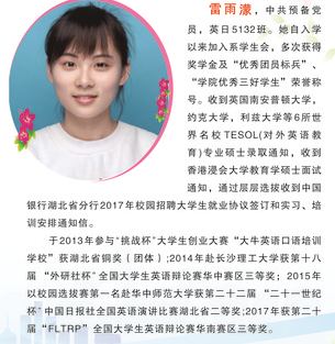 2017年第二届十佳老员工 雷雨濛 中共党员 外国语系英日5132班