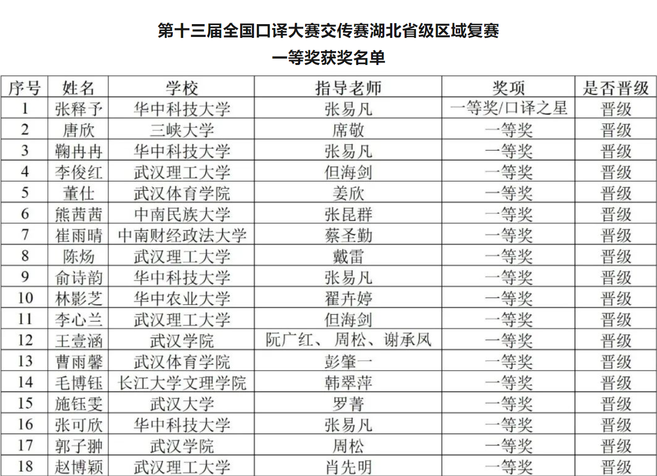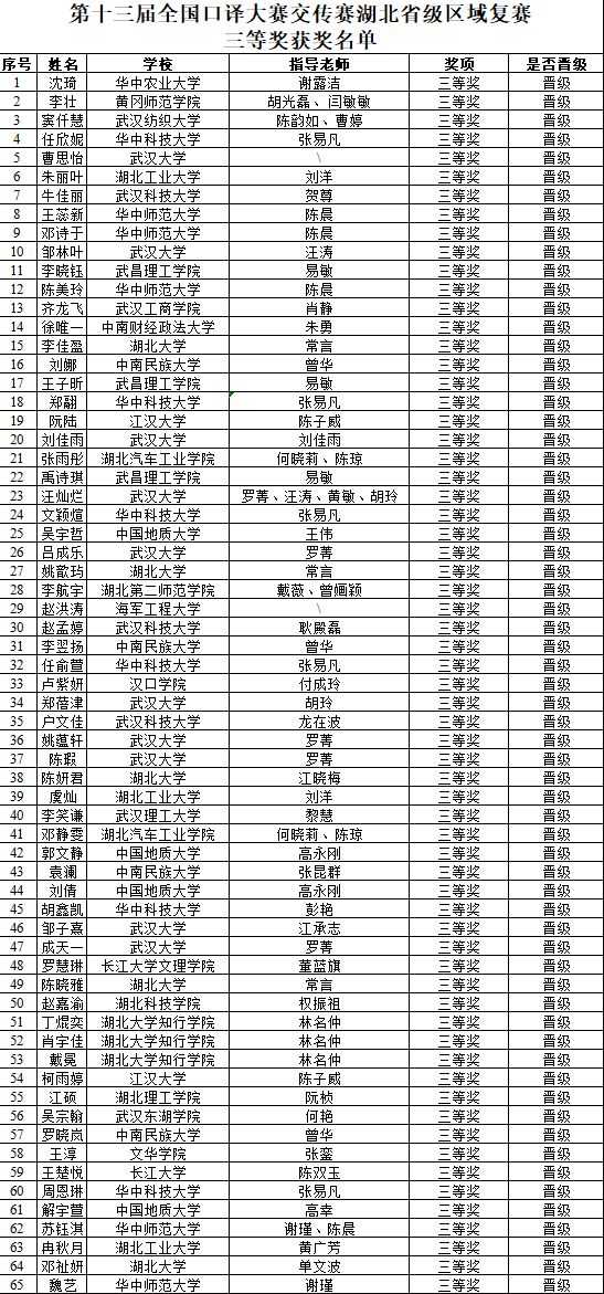 本届全国口译大赛湖北赛区复赛共设一等奖18名,二等奖39名,三等奖65名,优胜奖若干名。毛博钰和罗慧琳同学顺利晋级,将代表湖北省参加全国口译大赛交传全国决赛。