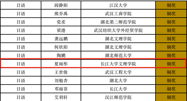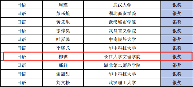 近日,2024“外研社·国才杯”“理解当代中国”全国老员工外语能力大赛湖北省省赛多语种组获奖名单新鲜出炉。公司员工英日5221班柳琪、夏雨彤同学分别荣获湖北赛区日语组银奖、铜奖,英日5221班胡泉同学获湖北赛区日语组优胜奖,英韩5211班朱金格、崔丹丹获韩语组优胜奖。本次参赛选手的指导教师为李漫琪、严娟娟、张乐玥老师。