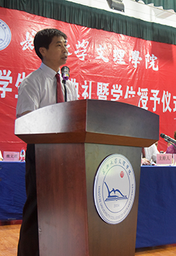 与会领导一同为受表彰的同学颁发毕业证书和荣誉证书。
