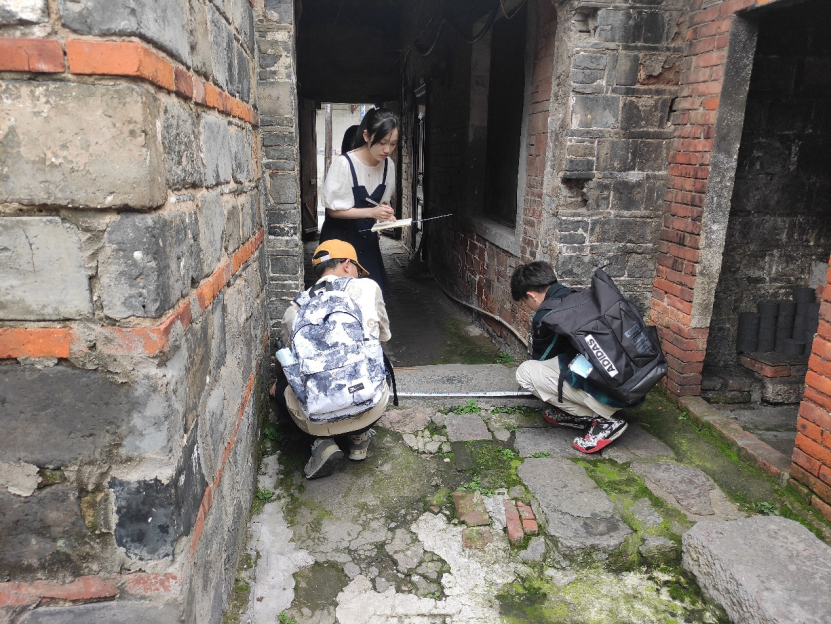当天下午,田从祥老师、郑聪老师带领参赛团队秦志伟、熊钰煊等同学到三义街街区进行问卷调查、实地勘探与测绘,深入了解街区现状并探访居民生活情况以及对街区保护利用的意向与建议。