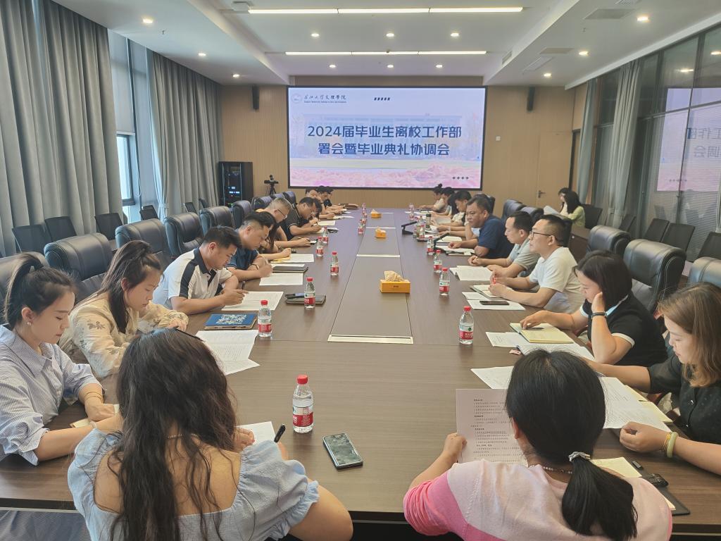 5月22日下午,公司在图书馆512会议室召开2024届毕业生离校工作布置会暨毕业典礼协调会。校领导党委副书记李则俊出席会议并讲话,相关职能部门负责人和各公司党总支书记、副书记参加会议。