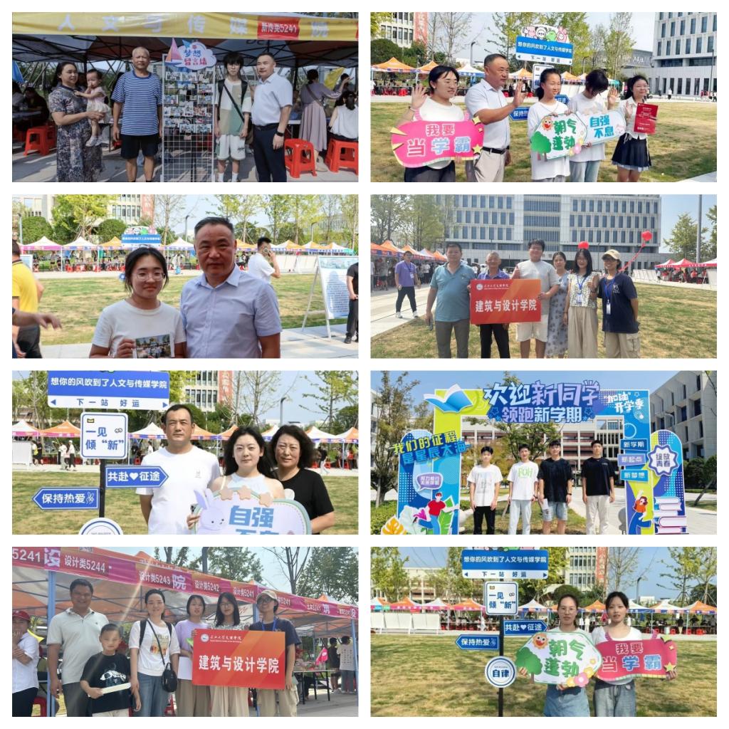 为增加新生入学报到的体验感和仪式感,各院系制作创意打卡点、标牌与背景巧妙融合公司文化,为新生营造家的氛围。