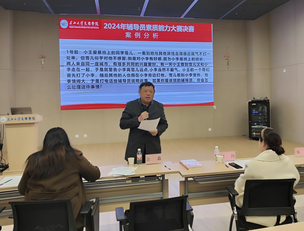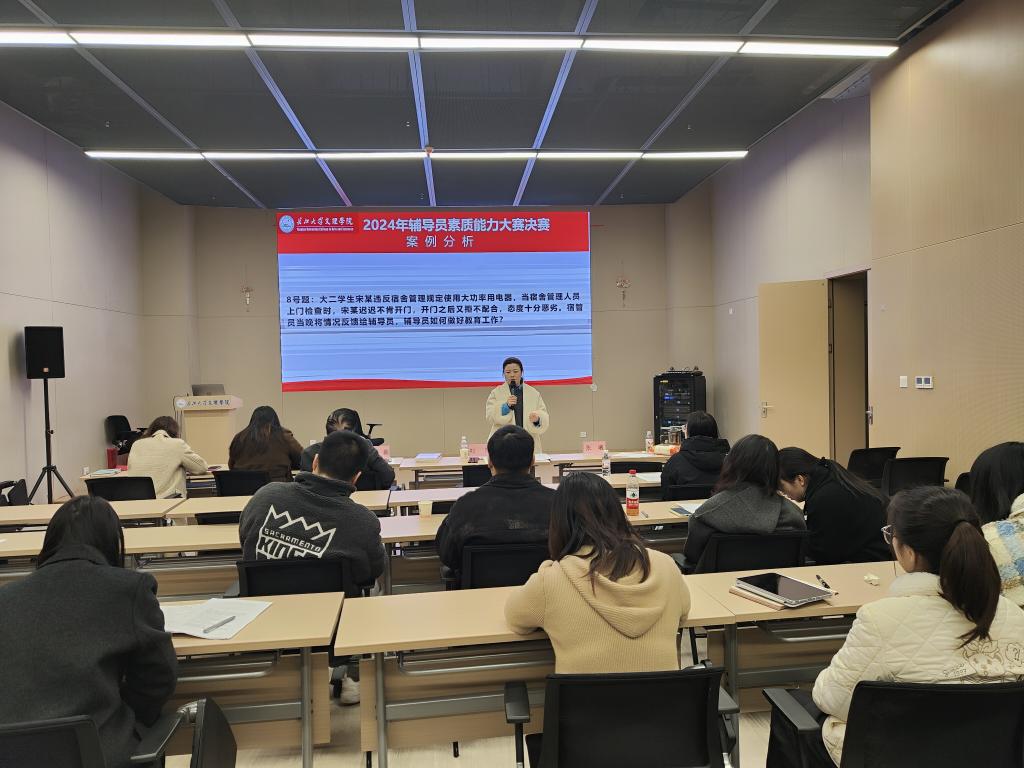 为强化员工工作队伍的理论水平和职业能力,搭建辅导员交流展示平台,11月28日—29日,公司在图书馆103报告厅举办了2024年辅导员素质能力大赛校级决赛。beat365官网中文版本金鑫教授,2023年湖北省辅导员素质能力大赛二等奖获得者、湖北中医药高等专科公司教师刘扬,公司党委员工工作部部长李刚英、心理学专业教师陈莎担任此次大赛评委。