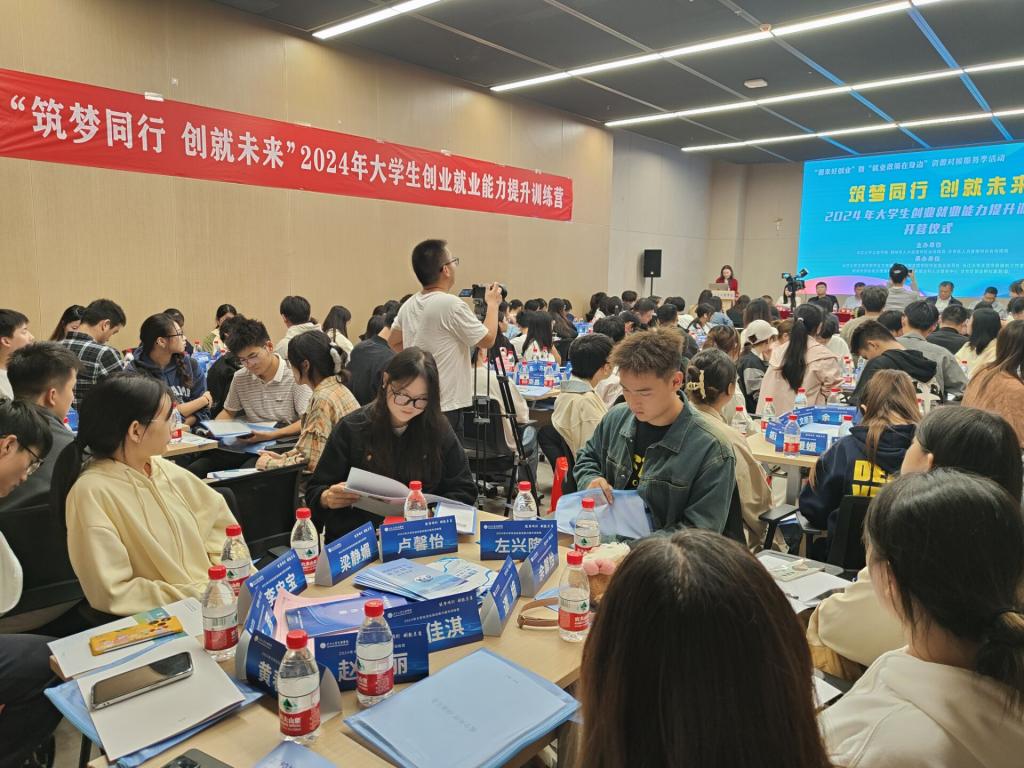 训练营活动启动仪式在图书馆103报告厅举行,荆州市人力资源和社会保障局、荆州市劳动就业服务中心、沙市区人力资源和社会保障局等单位负责人出席。荆州市劳动就业服务中心党总支书记、主任彭勇为启动仪式致辞,beat365官网中文版本公司党委副书记李则俊宣布训练营开营。