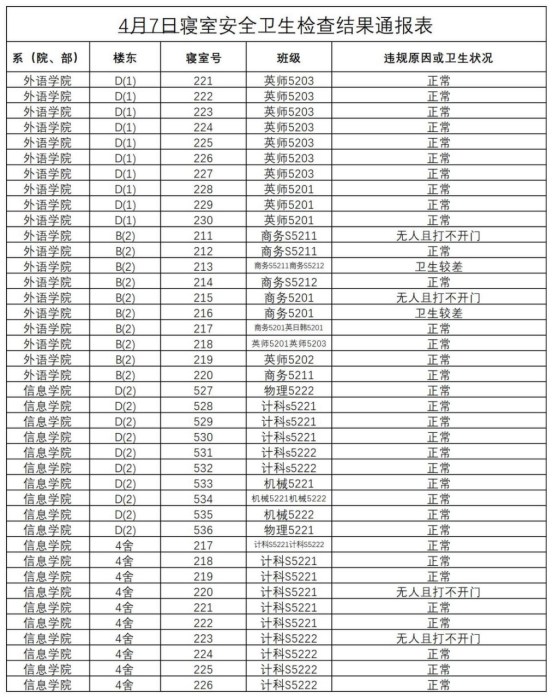 2022-2023学年第二学期第八周寝室安全卫生抽查结果通报