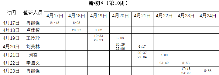 2022-2023学年第二学期第10周学工人员寝室值班通报