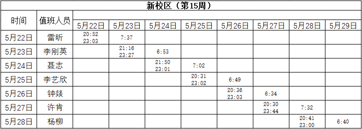 2022-2023学年第二学期第15周学工人员寝室值班通报