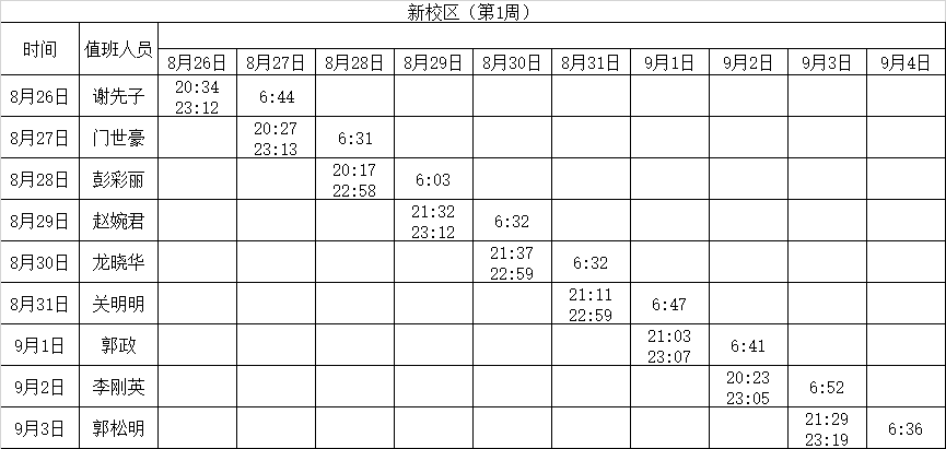 2023-2024学年第一学期第1周学工人员寝室值班通报