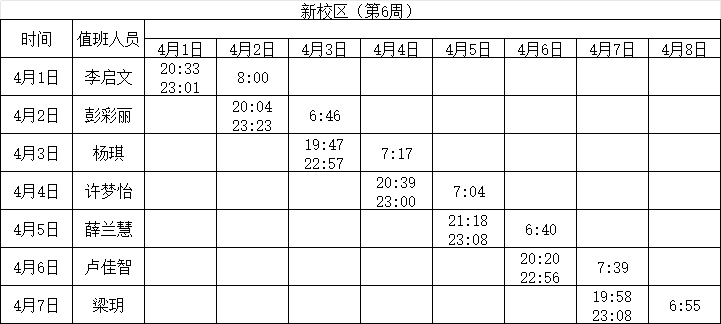 2023-2024学年第二学期第4-6周学工人员寝室值班通报