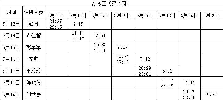 2023-2024学年第二学期第11-12周学工人员寝室值班通报